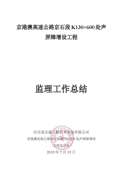 K130+600 處聲 屏障增設(shè)工程監(jiān)理報(bào)告