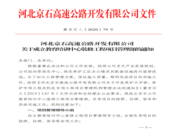 關(guān)于成立教育培訓(xùn)中心裝修工程項(xiàng)目管理部的通知