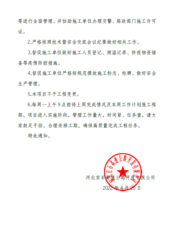 關(guān)于做好京港澳高速公路京石段2022年橋涵病害維修處治工程施工管理的通知