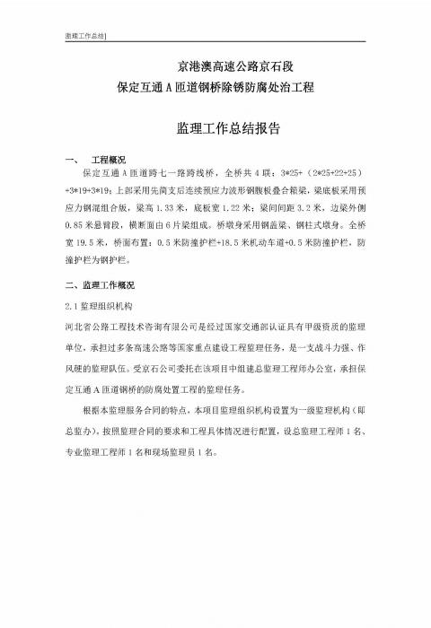 保定互通A匝道鋼橋除銹監(jiān)理報告