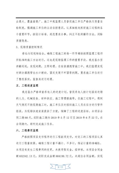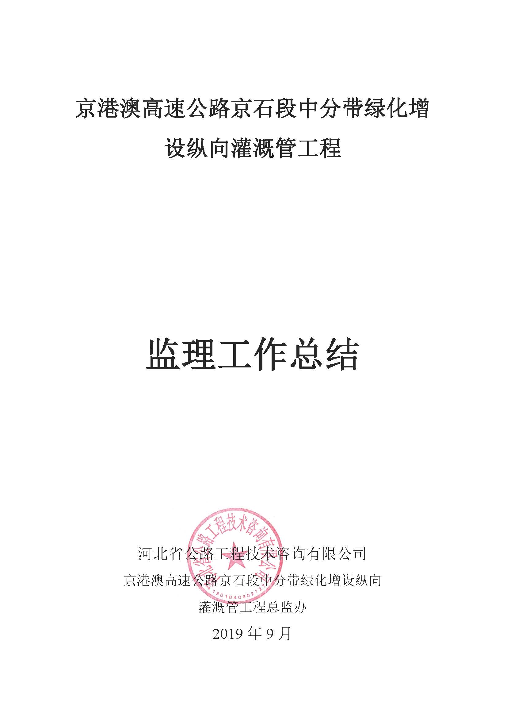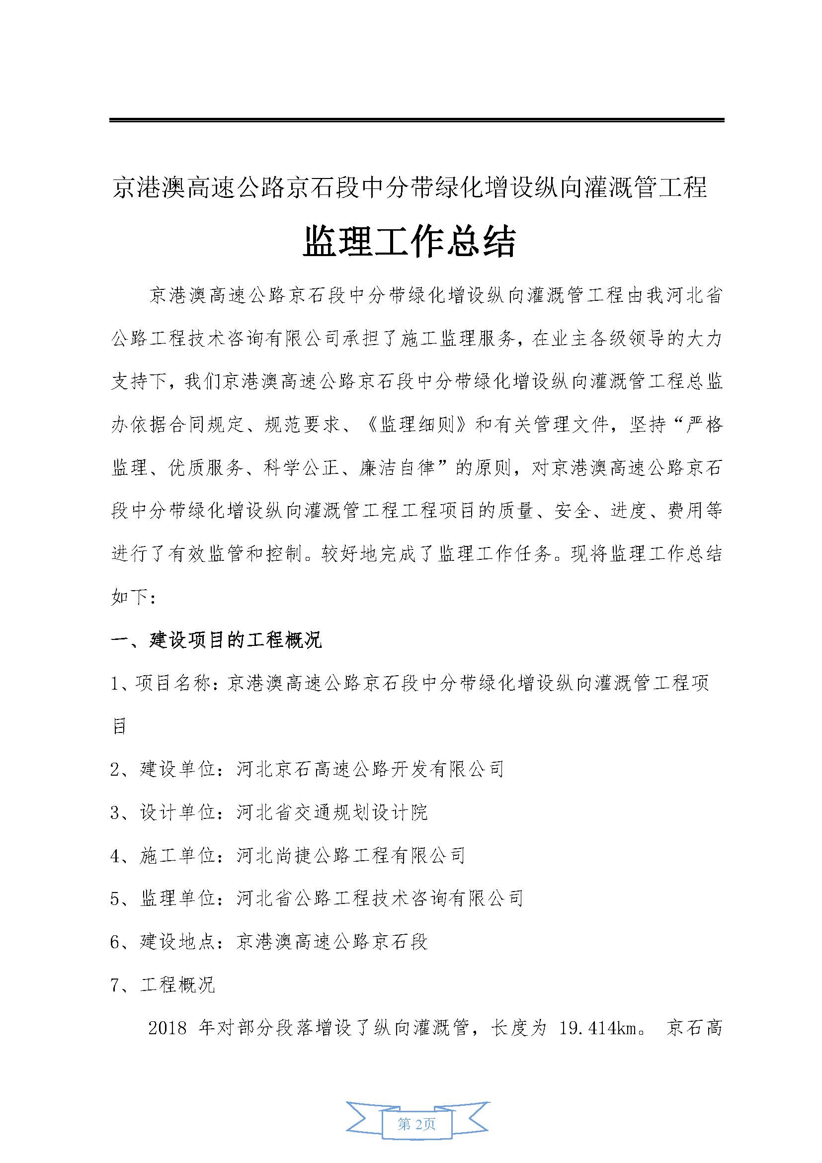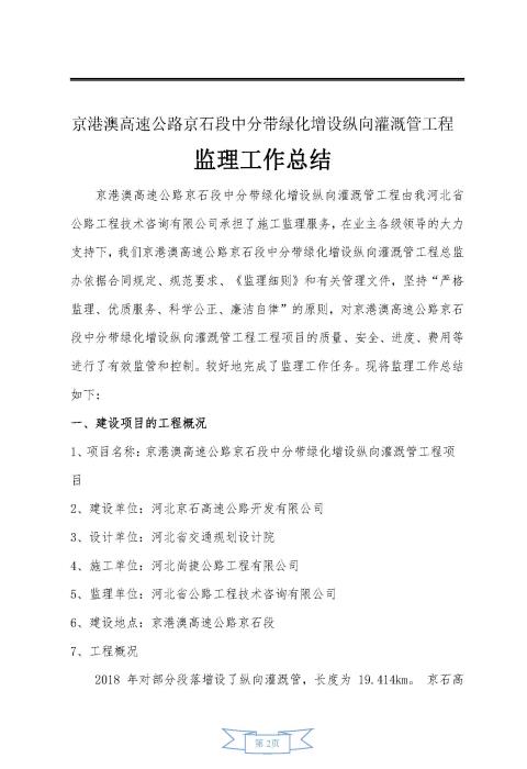 中分帶綠化增設縱向灌溉管工程監(jiān)理報告