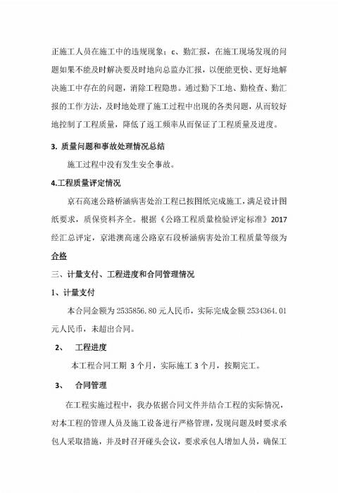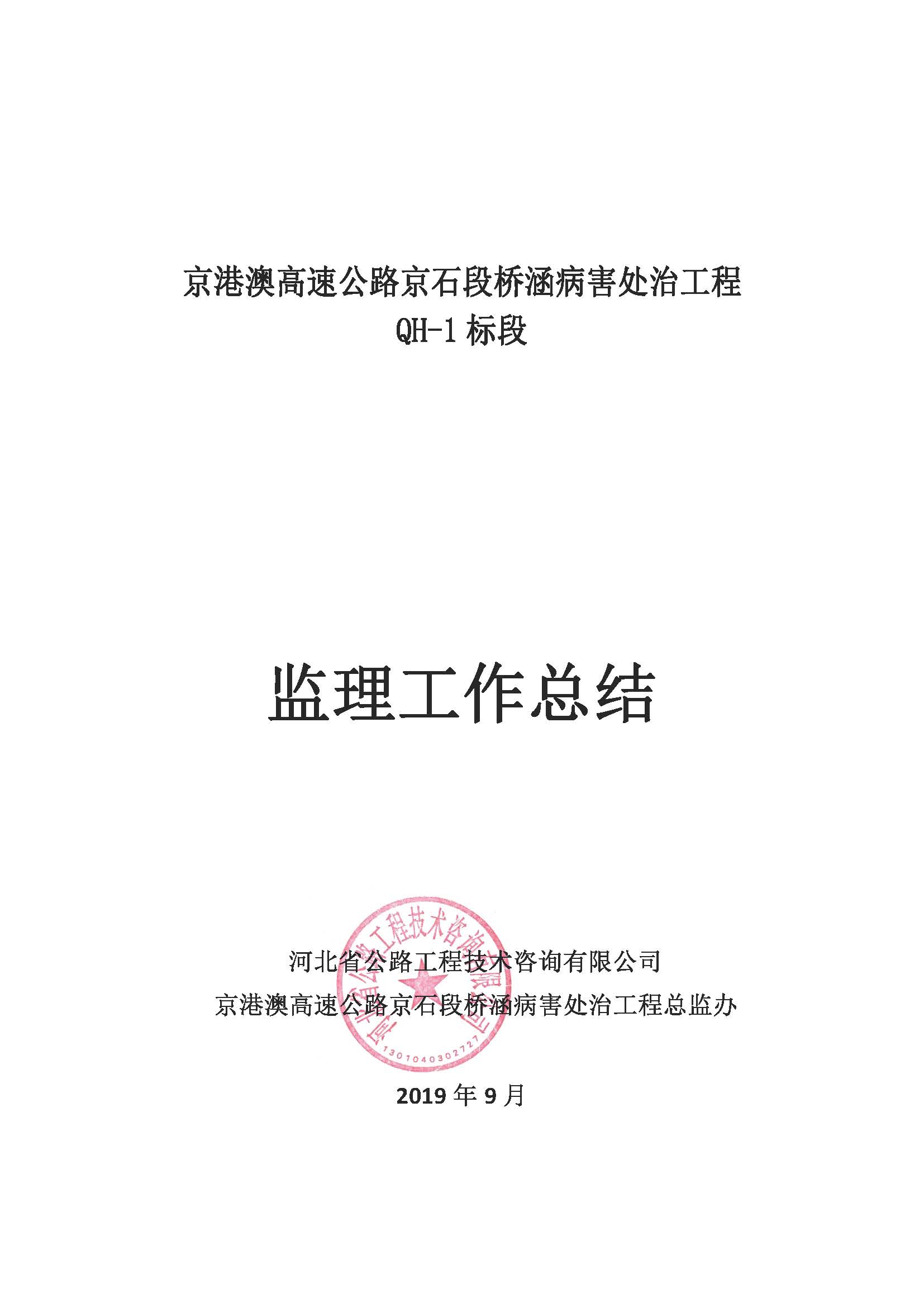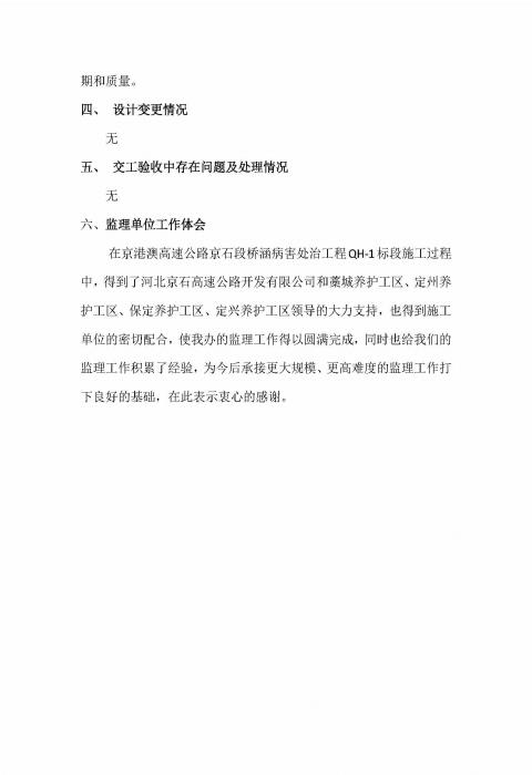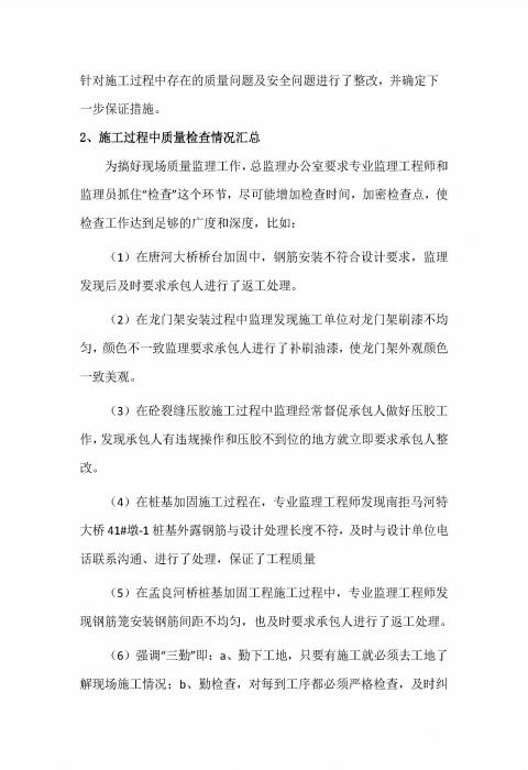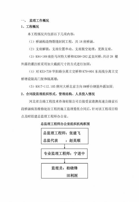 橋涵病害處治工程QH-1標(biāo)監(jiān)理報(bào)告