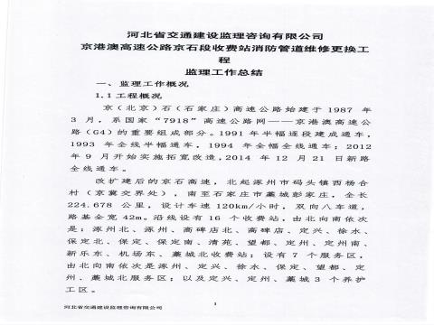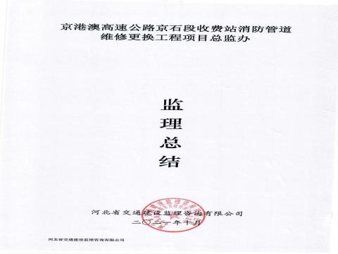 京港澳高速公路京石段收費(fèi)站消防管道維修更換工程監(jiān)理工作總結(jié)