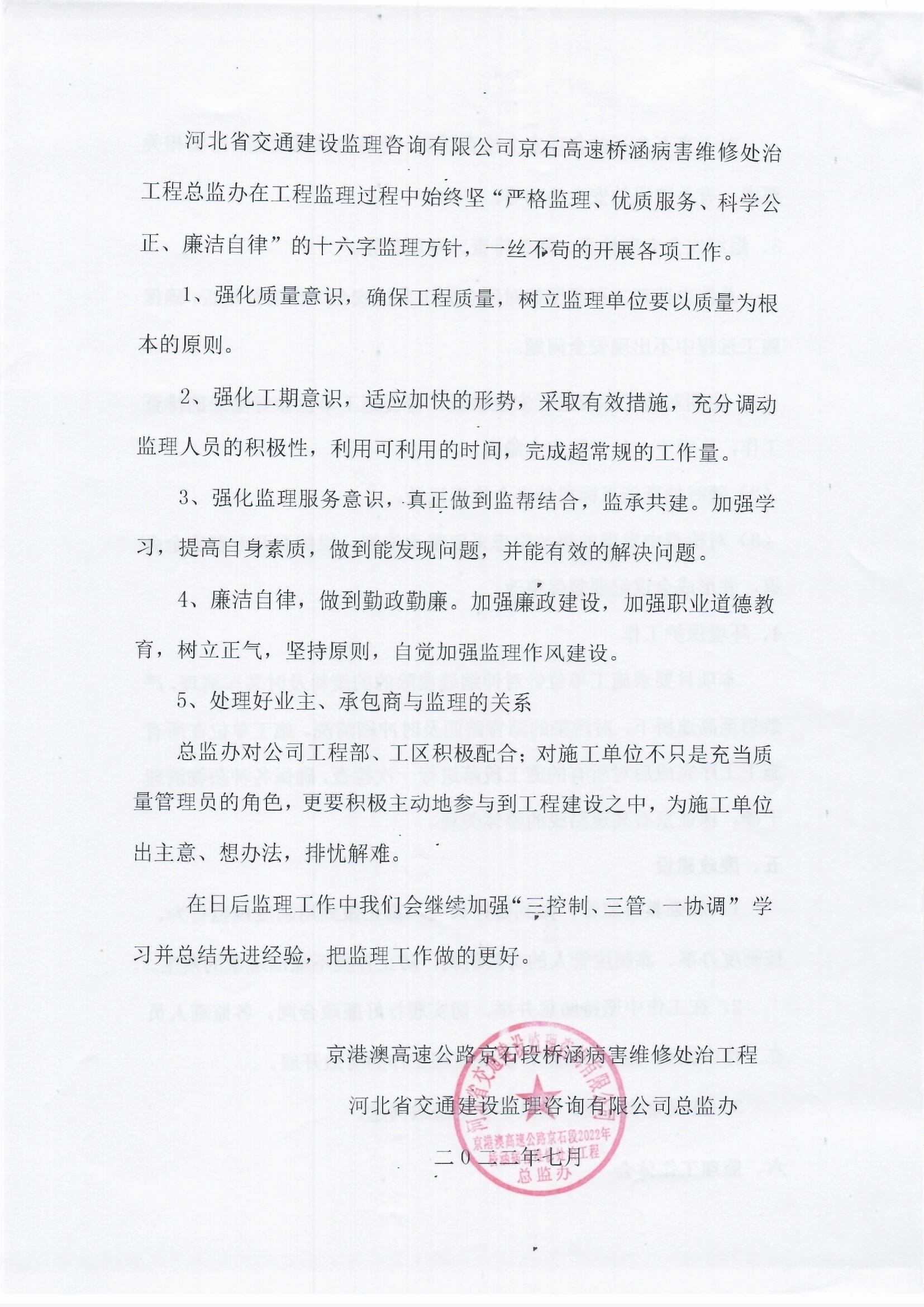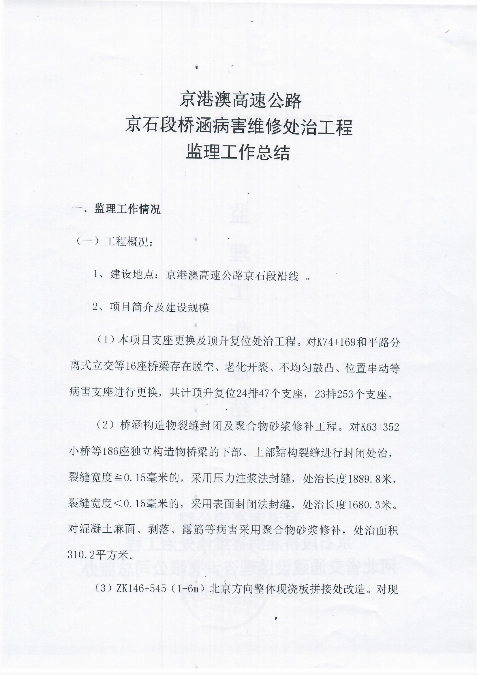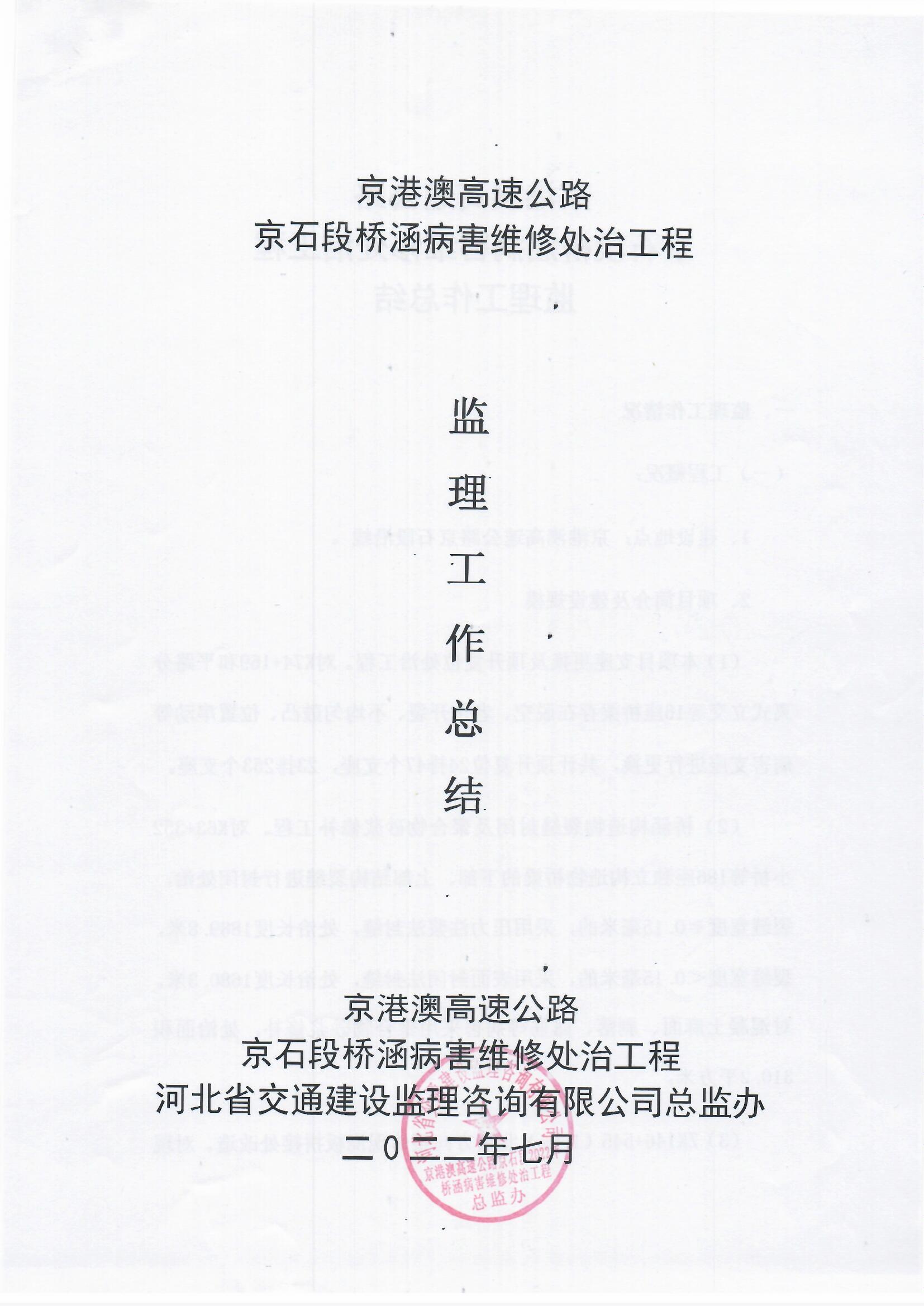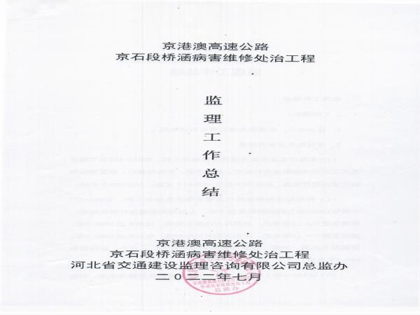 京港澳高速公路京石段2022年橋涵病害維修處治工程監(jiān)理報告