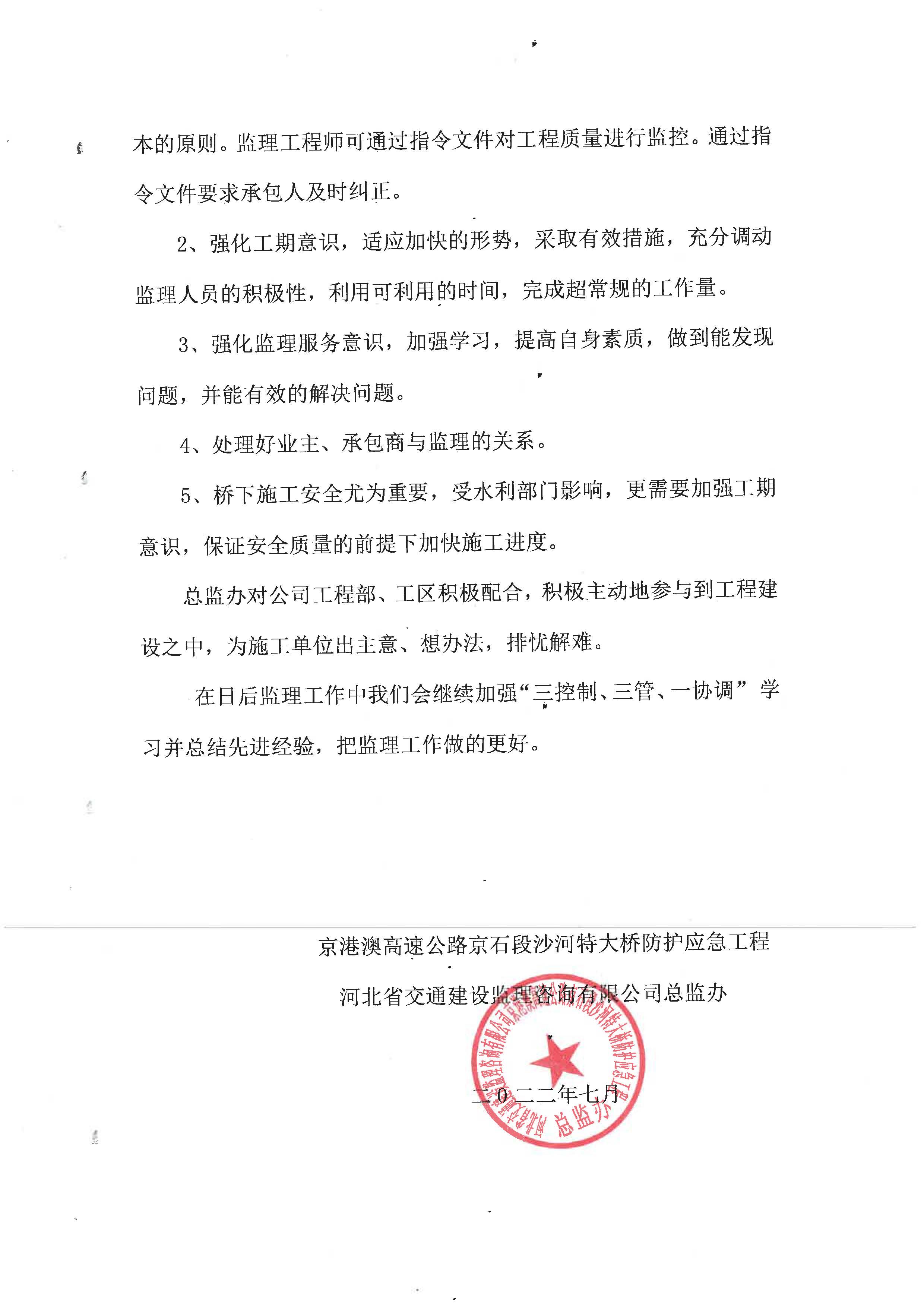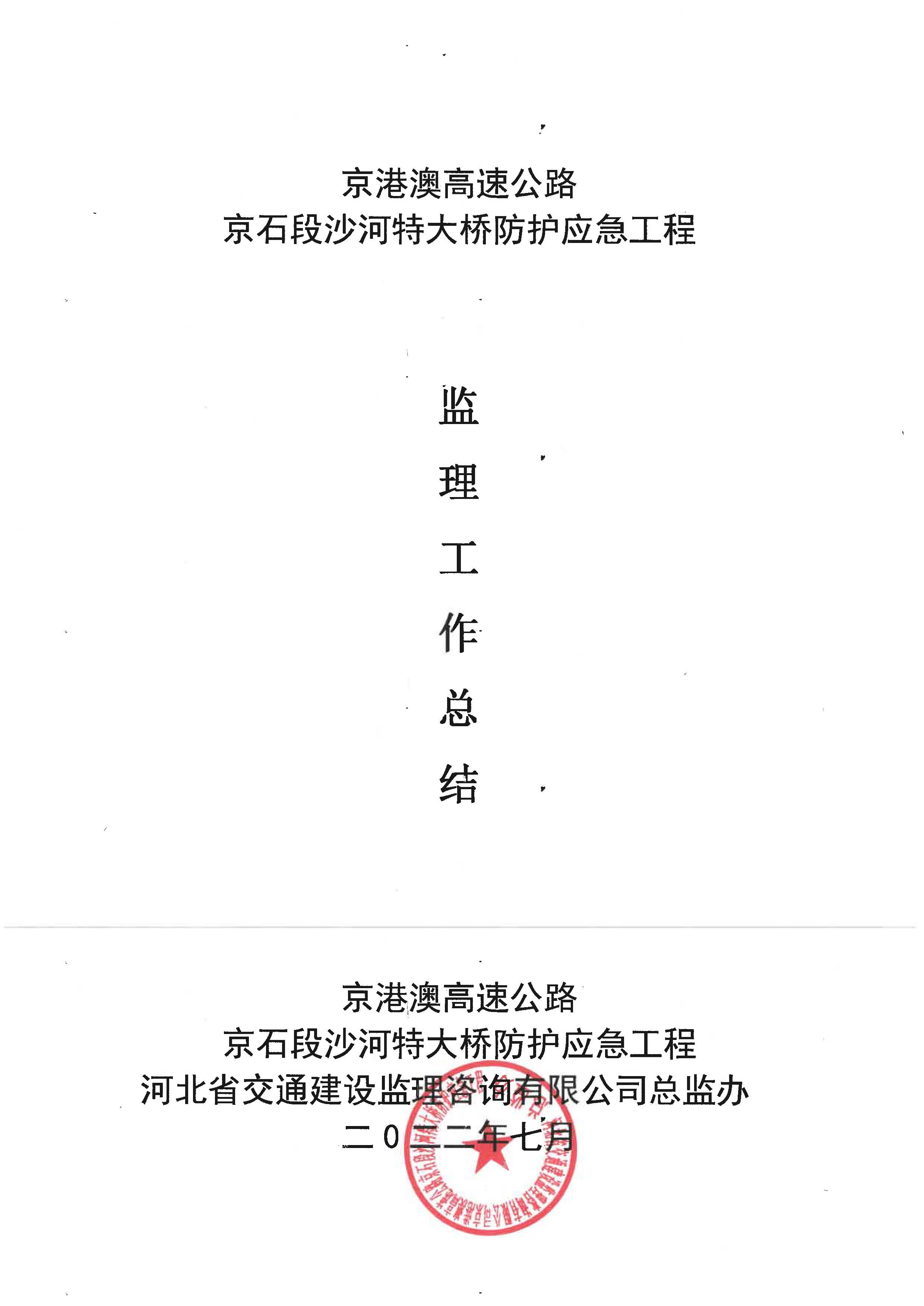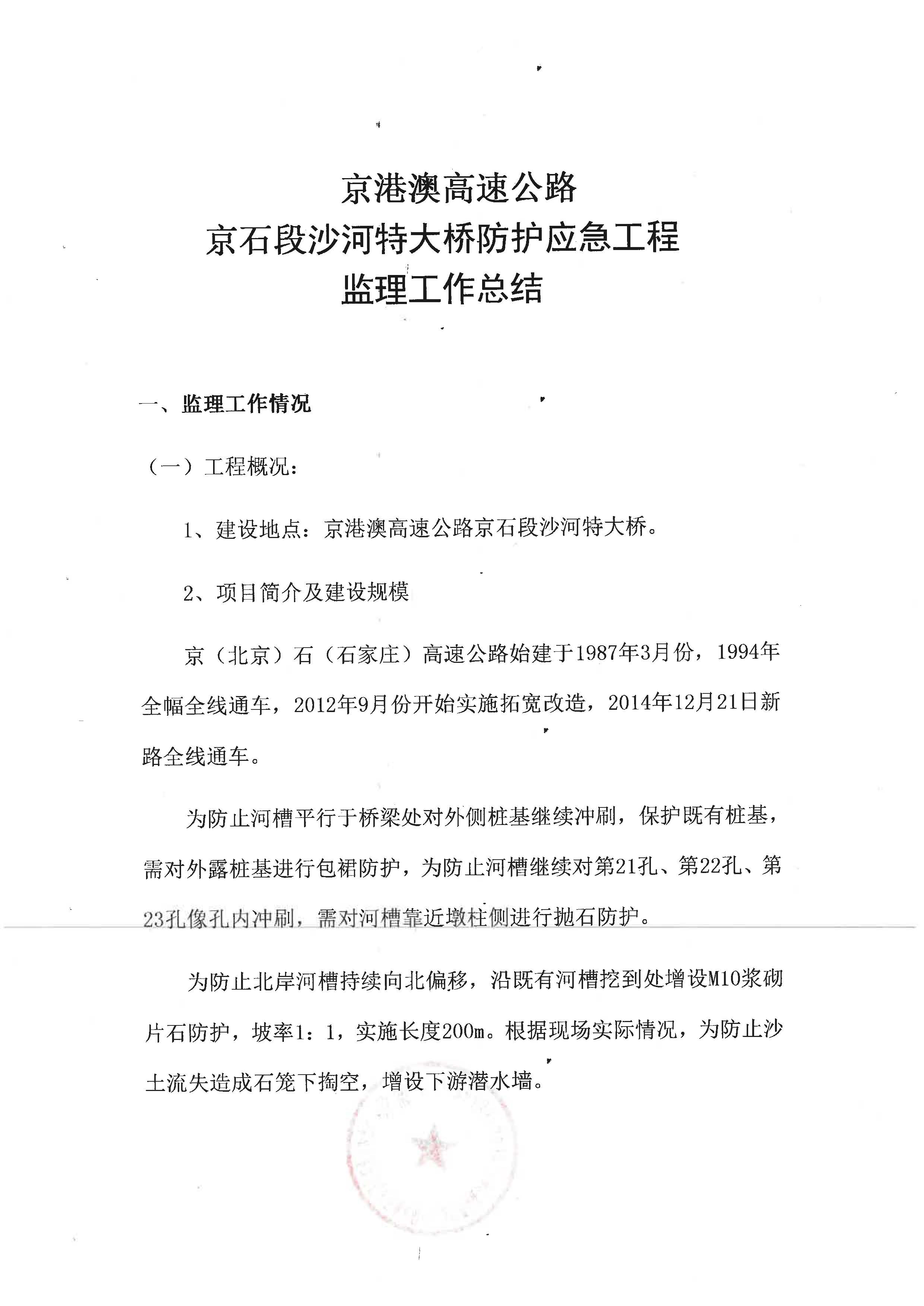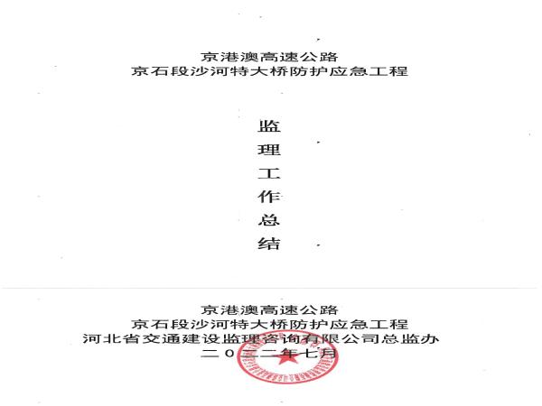京港澳高速京石段沙河特大橋防護應急工程監(jiān)理報告