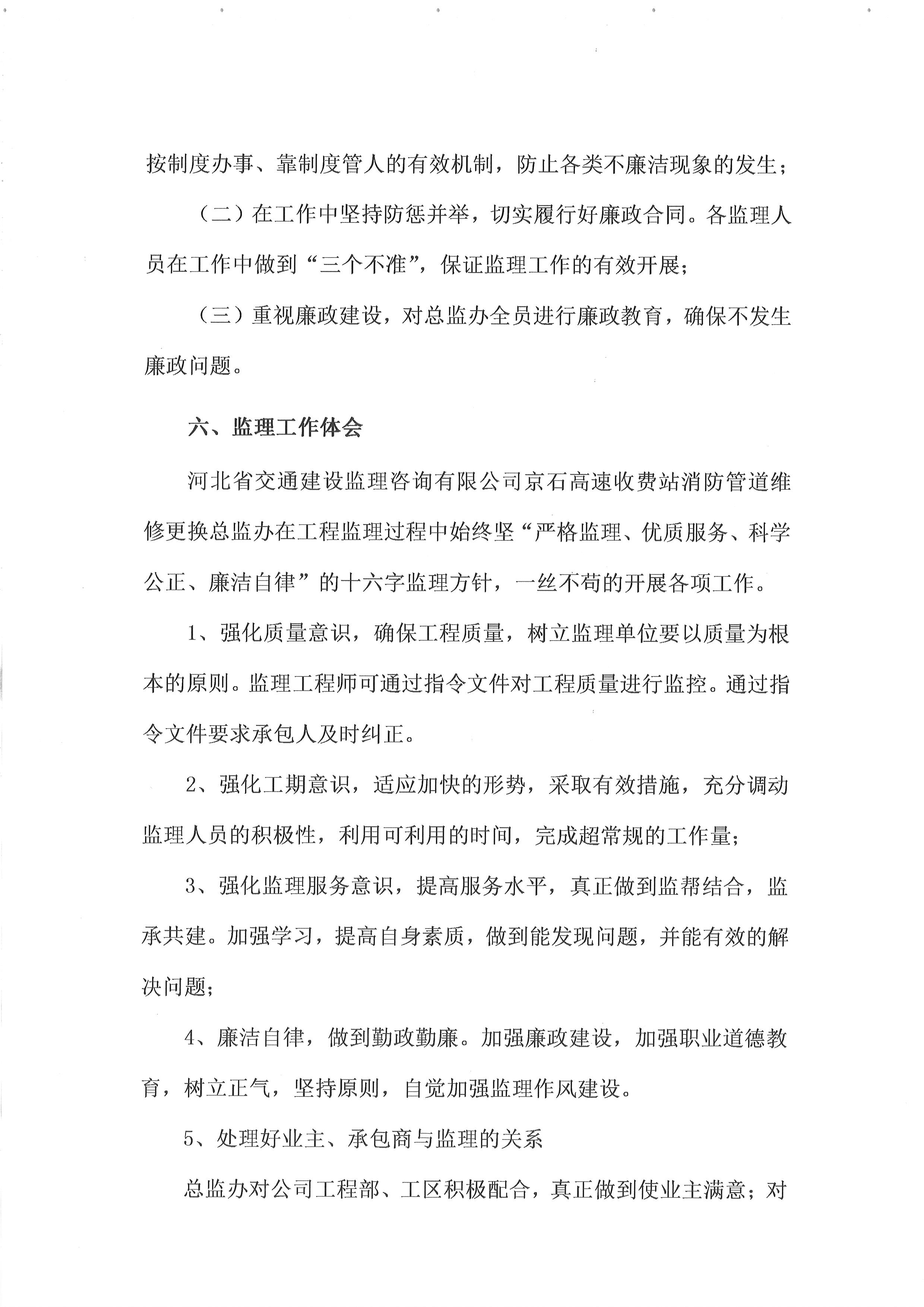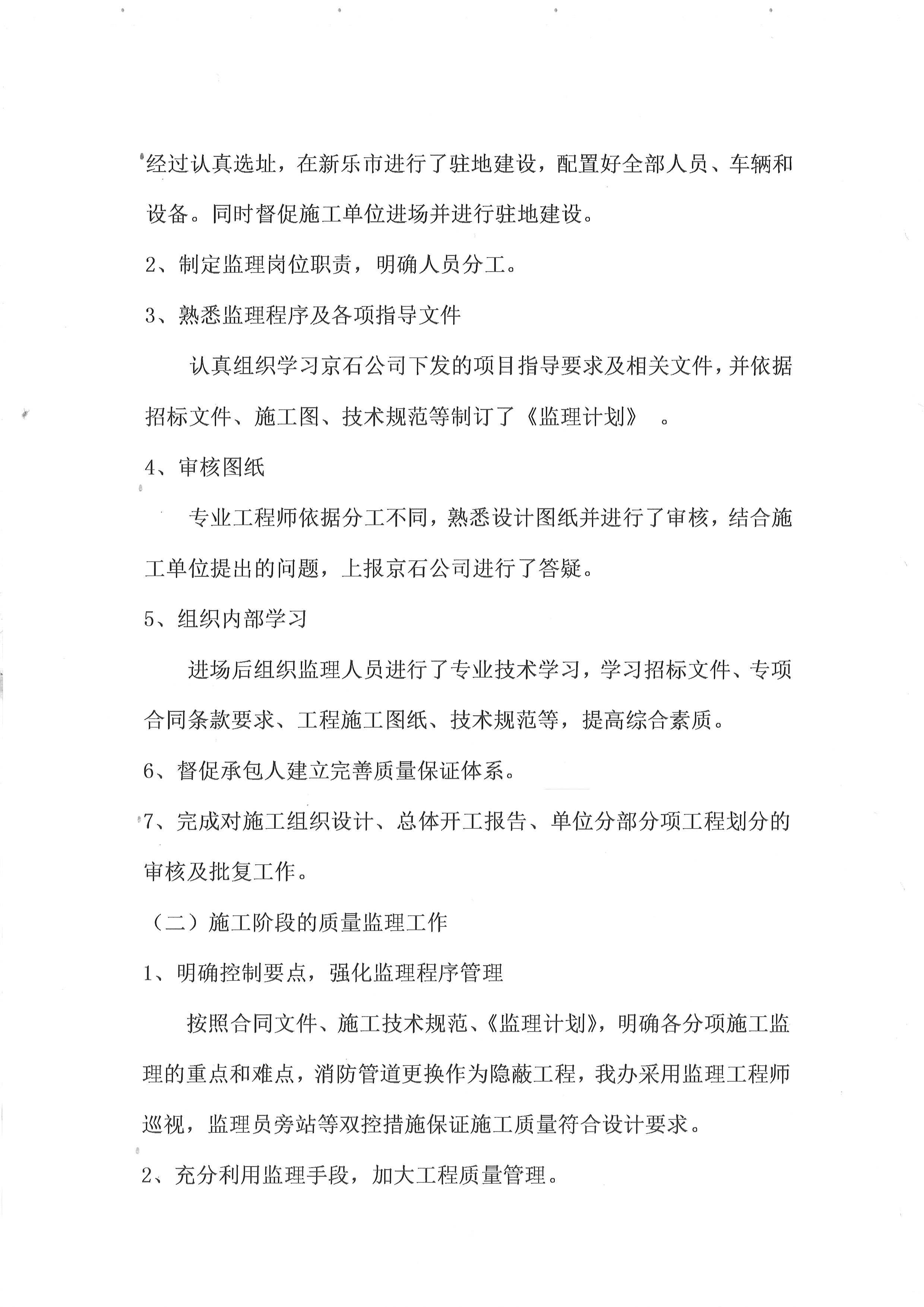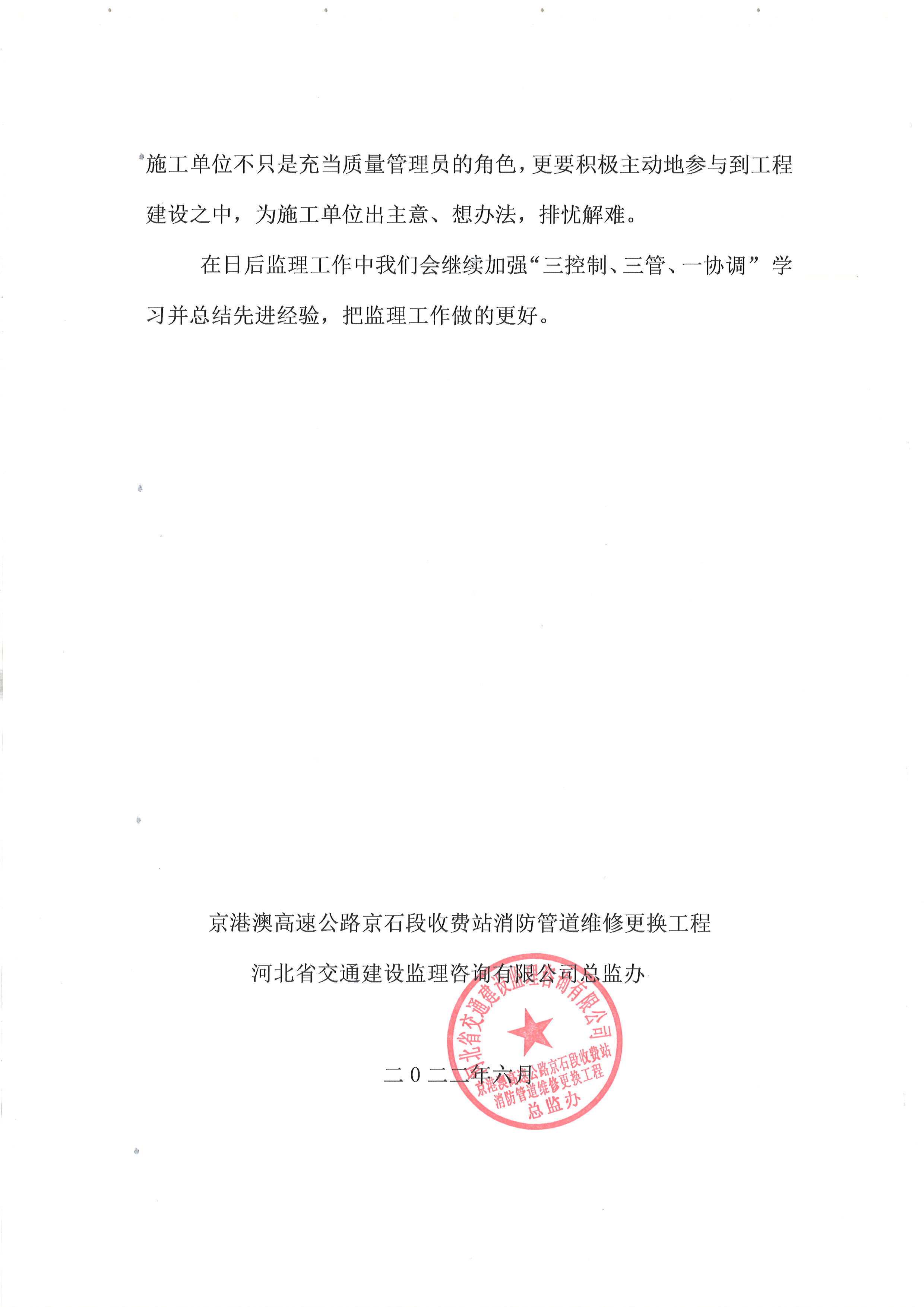 2022年京港澳高速京石段收費(fèi)站消防管道維修更換工程監(jiān)理工作總結(jié)