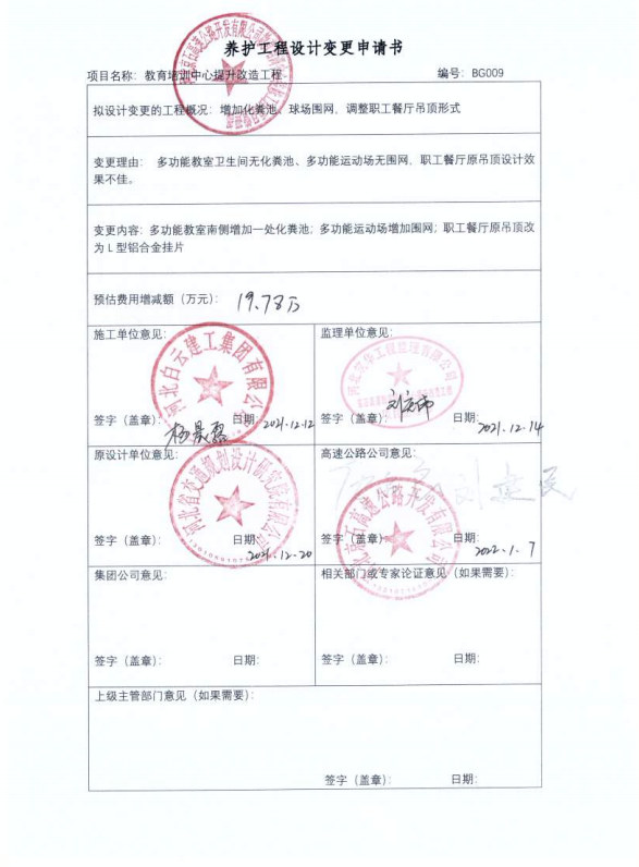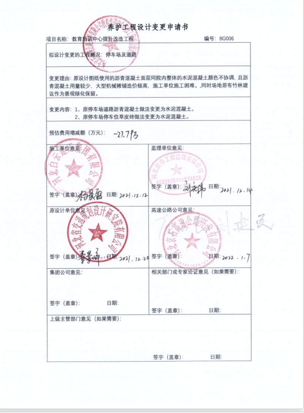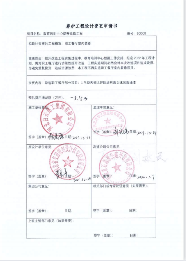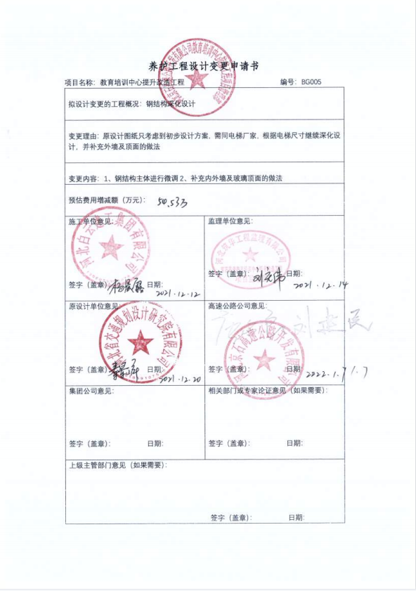 河北京石高速公路開發(fā)有限公司教育培訓(xùn)中心提升改造工程二期設(shè)計變更