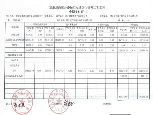 保定互通綠化提升二期工程支付證書(shū)