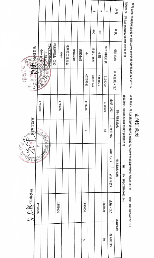 京港澳高速公路京石段K229+544沙河特大橋樁基水毀處治工程一期支付證書(shū)