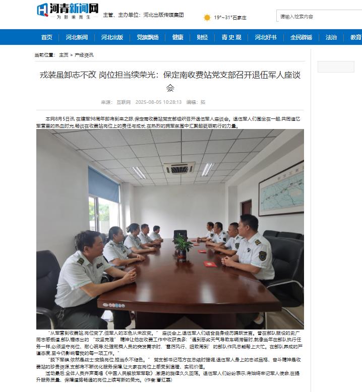 【河青新聞網(wǎng)】戎裝雖卸志不改 崗位擔當續(xù)榮光:保定南收費站黨支部召開退伍軍人座談會