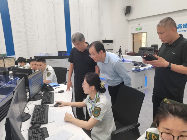 李昕通過外場視頻巡查了全線通行狀況及易緩行路段車流量數(shù)據(jù),詳細詢問了養(yǎng)護工區(qū)、救援公司等單位的點位值守和特情應對準備情況,并就一起側(cè)翻事故和一起車輛自燃事故的處置過程進行了現(xiàn)場調(diào)度,實地檢驗了多方協(xié)作應急效率。