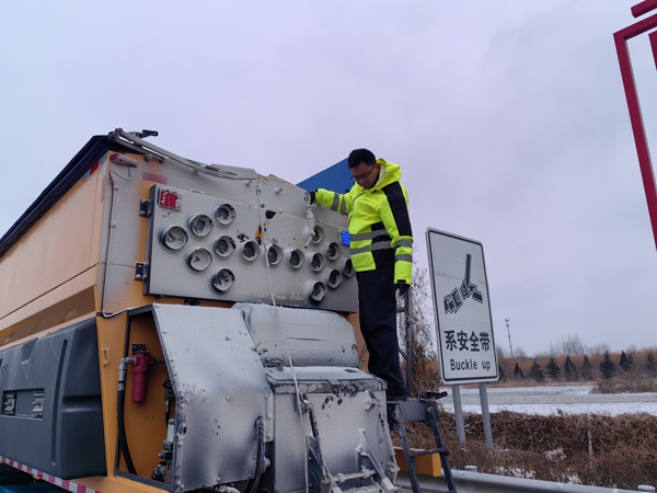 除雪期間,工區(qū)實行24小時輪班值守制度,安排專人實時巡查轄區(qū)內(nèi)積雪情況及撒布作業(yè)效果并進行實時研判,根據(jù)積雪變化動態(tài)調(diào)整作業(yè)計劃,及時補充融雪劑、組織二次撒布作業(yè),確保主路暢通、道路不結冰。同時,加強與交警、路政等部門的協(xié)調(diào)聯(lián)動,及時共享雪情、道路通行等信息,協(xié)同處置突發(fā)情況形成工作合力。