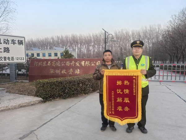 12月6日下午,天津世創(chuàng)機(jī)械設(shè)備租賃有限公司負(fù)責(zé)人專程趕到京石高速涿州收費(fèi)站北口,向收費(fèi)三班全體人員送上一面印著“熱情服務(wù) 排憂解難”的錦旗。錦旗雖輕,背后卻是一場與時(shí)間賽跑、與困難較量的“超寬護(hù)航戰(zhàn)”。
