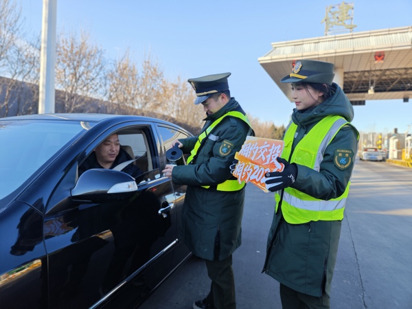 天氣雖然寒冷,站口卻暖意融融?!跋嗉s交投·相約2026”主題橫幅掛在顯眼處,洋溢著向新向上的新年氣象。工作人員身著整齊工裝,笑容親切,一邊耐心講解“冀交萬里行”積分使用規(guī)則以及新年優(yōu)惠活動(dòng),邀請司乘加入會(huì)員暢享更多出行服務(wù);一邊將一杯暖姜茶、一次貼心指路、一件觸手可及的便民工具,化作實(shí)實(shí)在在的溫暖,連同真摯的新年祝福,親手遞送給過往司乘。