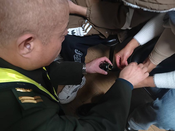 “別著急,我們馬上幫您處理!”李偉一邊安撫陳女士的情緒,一邊攙扶陳女士到便民服務(wù)崗?fù)?,拿出?yīng)急藥箱熟練地用碘伏為陳女士清理傷口,涂抹消腫止痛藥膏,并用彈性繃帶進行固定包扎。“天氣這么冷,您先在便民服務(wù)崗?fù)だ锱鸵幌拢覀凂R上幫助聯(lián)系您的家人。”隨即,李偉聯(lián)系了陳女士的家人。