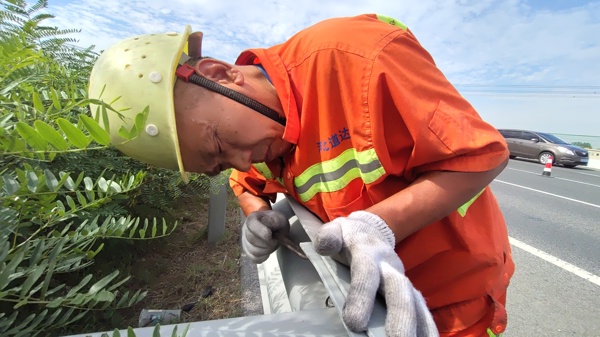 為了完成勞動競賽各項(xiàng)目的技術(shù)狀況提升工作,定州工區(qū)采用邊調(diào)查邊施工的方案,加快技術(shù)狀況提升工作的進(jìn)度。四個項(xiàng)目中工程量最大的是護(hù)欄設(shè)施技術(shù)狀況提升工作,需要對雙幅將近140公里的鋼護(hù)欄的螺栓、防阻塊、墊片等各種配件完好程度進(jìn)行檢查,不放過每一條螺栓、每一個墊片。工區(qū)集中優(yōu)勢兵力先啃這塊硬骨頭,利用秋季多晴好天氣的有利條件,將施工人員分成幾組,延長施工時間分段進(jìn)行施工,將缺少的護(hù)欄配件逐個補(bǔ)齊,將每一個螺栓挨個擰緊。對防眩設(shè)施的提升工作則是利用中央帶綠化修剪的施工現(xiàn)場合并施工,將中央帶綠化間零星分布的銹蝕的金屬防眩網(wǎng)進(jìn)行更換。