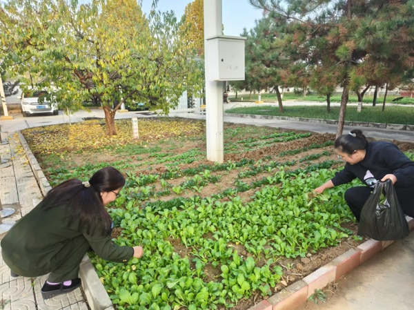 走進(jìn)菜園,映入眼簾的是一排排整齊劃一的小白菜,它們在冬日的陽光下、在落葉的襯托下顯得格外耀眼。這些小白菜是清苑站全體員工共同努力的結(jié)果,從播種到收獲,每一顆白菜都承載著大家的汗水與希望。