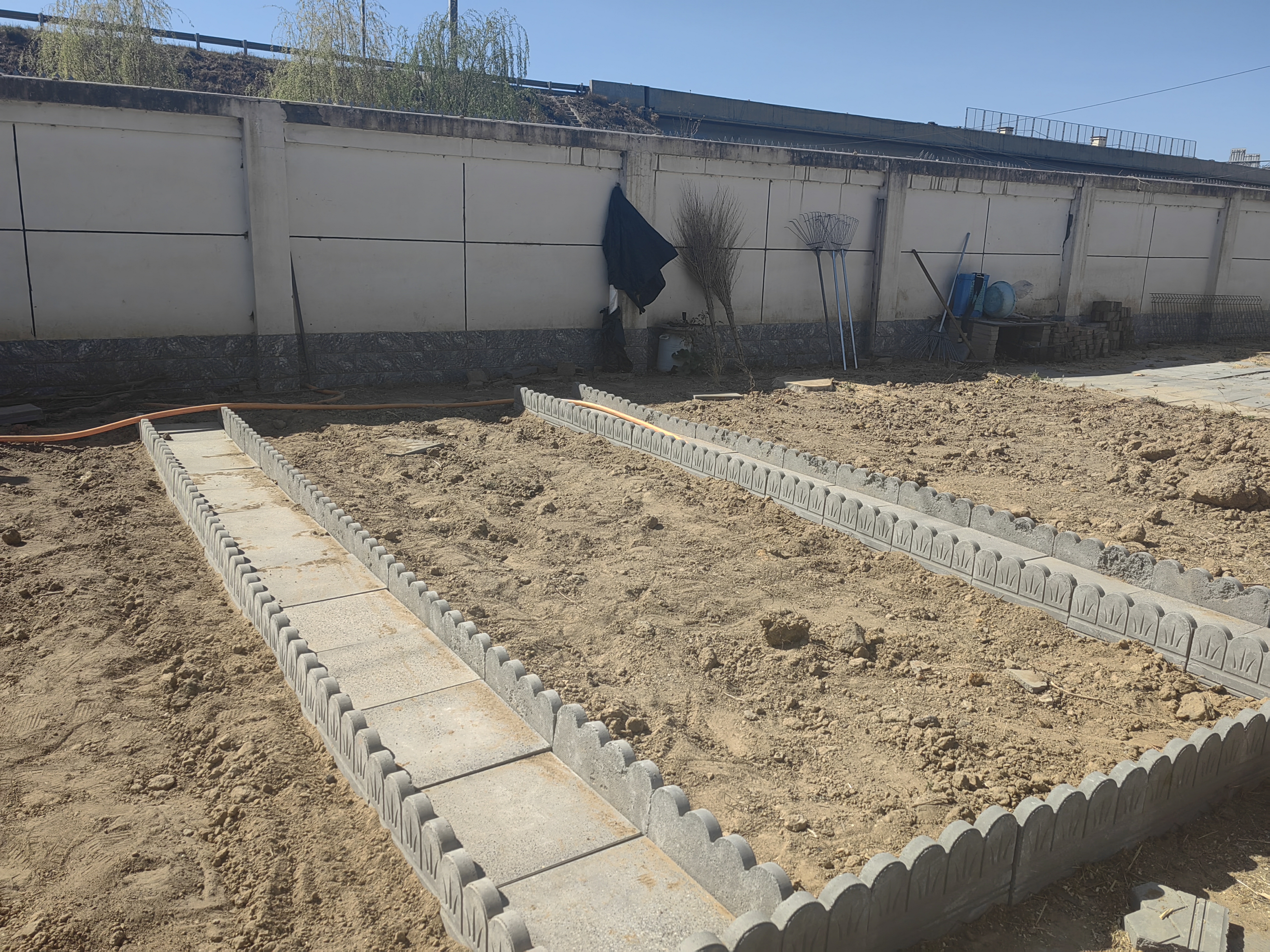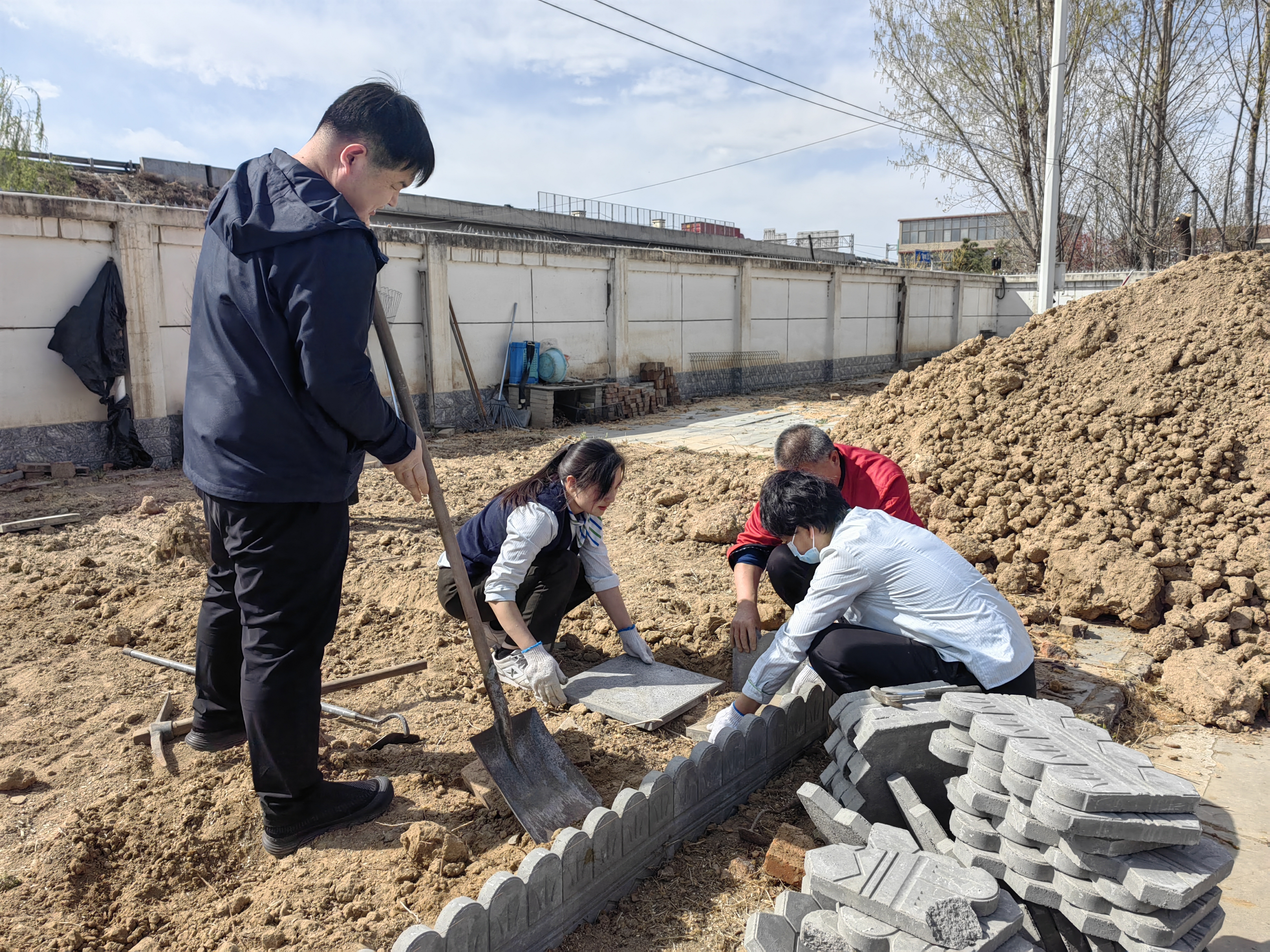在鋪磚環(huán)節(jié),大家集思廣益,雖然不是專業(yè)的,但是在這個(gè)網(wǎng)絡(luò)發(fā)達(dá)的時(shí)代,大家對(duì)照手機(jī)里的教學(xué)視頻,將每塊磚錯(cuò)縫排列,既能防止雜草滋生,又形成自然的導(dǎo)水槽。站長(zhǎng)劉淑芳帶著“徒弟們”用棉線拉出筆直的基準(zhǔn)線,食堂“資深”的蘇師傅手持橡膠錘反復(fù)敲打校正,磚縫誤差嚴(yán)格控制在3毫米內(nèi)。新入職的昕瑤邊鋪磚邊贊嘆:“這手藝太牛了?!币帽娙斯笮?。大家干得熱火朝天,汗水浸透了衣服,也不知疲倦,仿佛閃念間看到了不久后菜園里豐收的場(chǎng)景。