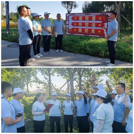 夏日的絲路友誼園綠意盎然,蜿蜒步道如一條銀色紐帶。員工們精神飽滿,步伐矯健,在黨旗的引領(lǐng)下闊步前行。一枚枚胸前閃耀的黨徽,在綠樹碧草的映襯下格外醒目,無聲訴說著對黨的忠誠信仰。