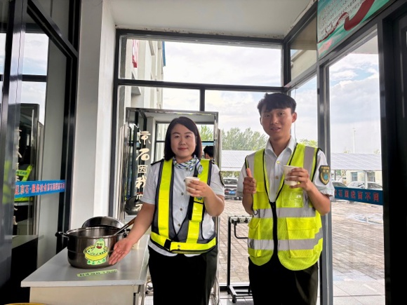 除了發(fā)放防暑物資,定興站食堂也積極行動(dòng)起來(lái),為員工們準(zhǔn)備了清涼解暑的綠豆湯和清甜可口的西瓜。在高溫環(huán)境下工作后,喝上一碗綠豆湯,吃上一塊西瓜,瞬間驅(qū)散了暑氣,讓員工們倍感舒適。同時(shí),為應(yīng)對(duì)可能出現(xiàn)的中暑情況,工會(huì)還購(gòu)買了藿香正氣水等防暑藥品,放置在各工作場(chǎng)所,方便員工隨時(shí)取用。